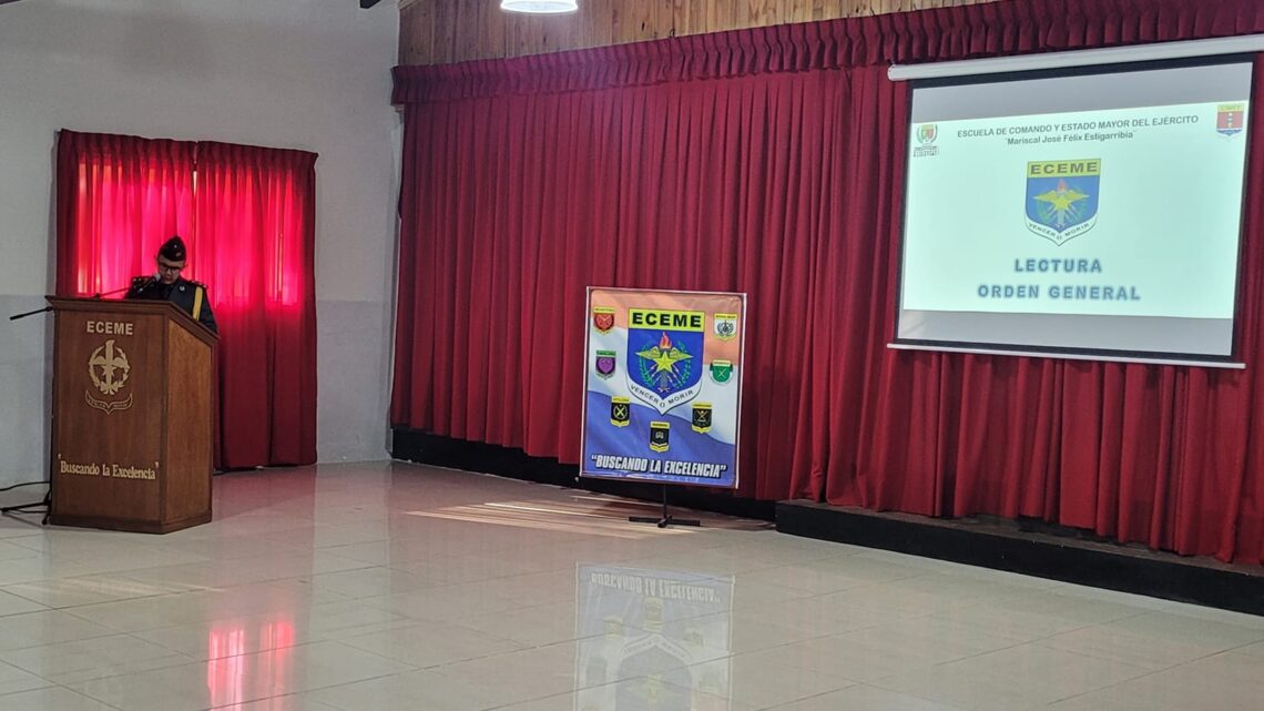 EN HORAS DE LA MAÑANA DE HOY MARTES 1 DE NOVIEMBRE DEL CORRIENTE AÑO, SE REALIZÓ LA CEREMONIA DE ENTREGA Y RECEPCIÓN DE LA ESCUELA DE COMANDO Y ESTADO MAYOR DEL EJÉRCITO MCAL JOSÉ FELIX ESTIGARRRIBIA (ECEME), POR PARTE DEL CNEL DCEM JOSÉ ALEJANDRO SANTANDER DANS AL CNEL DCEM ALFONSO GAMARRA SOSA.