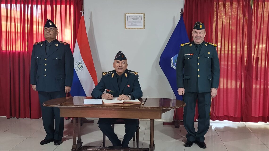 Por parte del Señor Agregado de Defensa y Jefe de la Cooperación Brasileña Cnel Inf Nilbert Viana Gramosa, acompañado por los miembros de la oficina de Cooperación Militar Brasileña en el Paraguay.